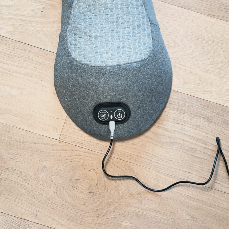 Connect the cushion to a USB power source. When the buttons light up, it’s ready. -